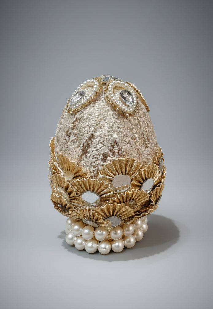 Add a touch of timeless elegance to your wedding ceremonies with our Golden Mirror Work Nariyal. This beautifully handcrafted piece features luxurious gold fabric adorned with delicate floral pleats, reflective mirror embellishments, and sparkling stone detailing. The base is finished with a neat ring of pearls, adding grace and balance to its overall look. Ideal for traditional rituals, bridal offerings, or as a decorative keepsake.