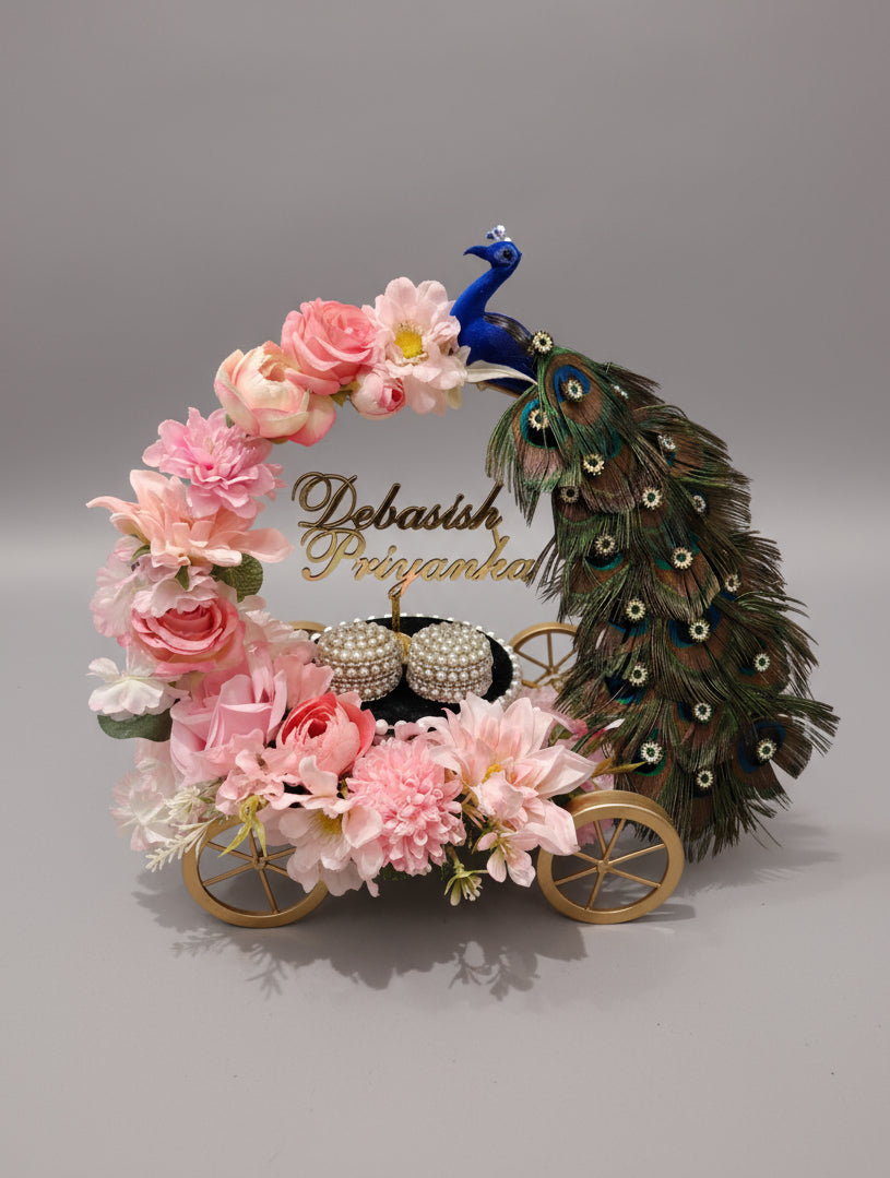Elevate your special moments with this exquisite Engagement Ring Platter. Designed with a harmonious blend of elegance and modern aesthetics, this platter is perfect for showcasing your engagement rings in style. Crafted with a metal base, adorned with delicate floral arrangements, golden accents, and a peacock , it creates a luxurious yet romantic display.