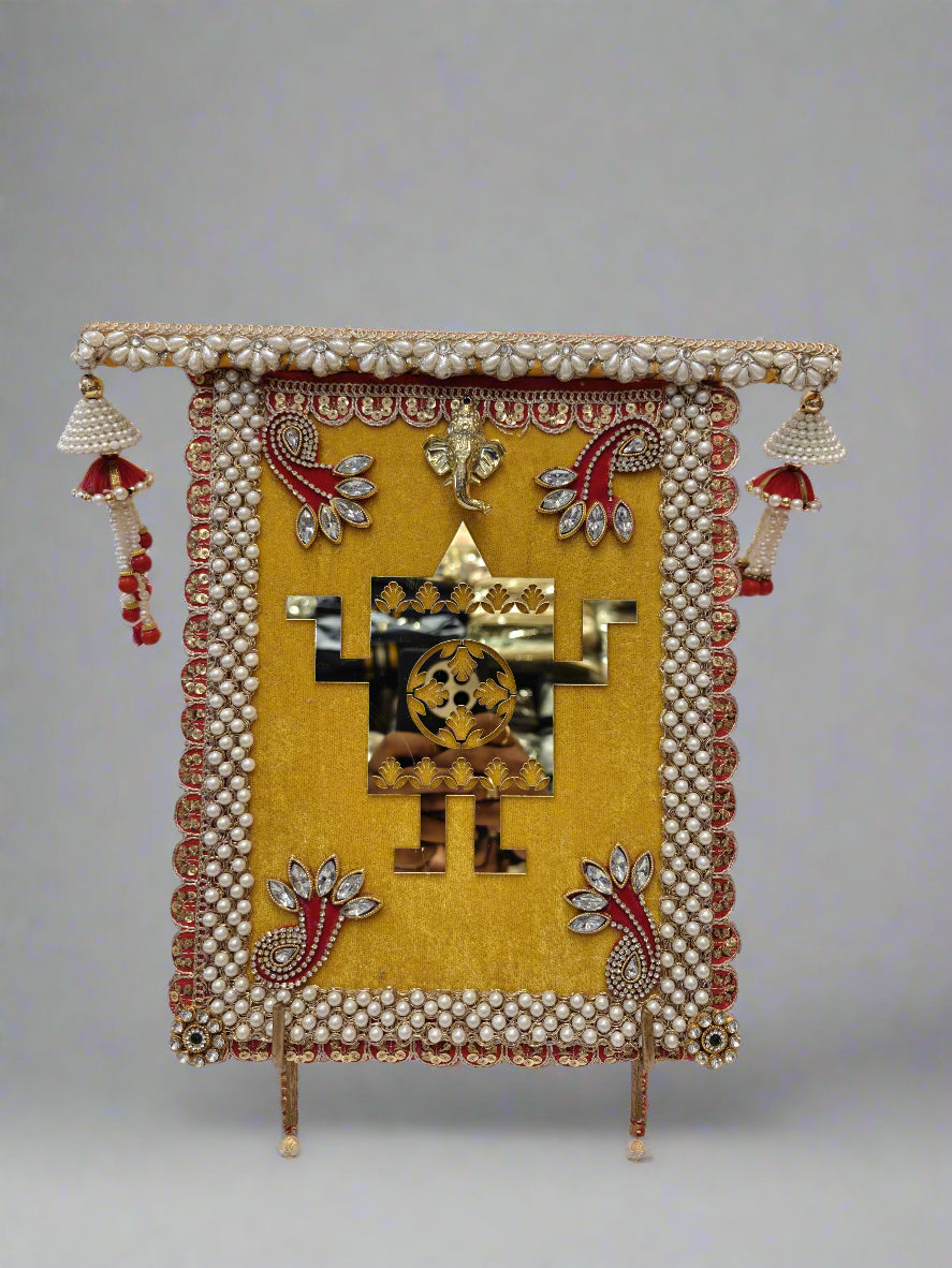 Begin your wedding rituals with devotion using our MDF Thaapa (9x12 inches), an essential for the Devta Poojan performed before the wedding. This beautifully crafted Thaapa serves as a sacred base for invoking divine blessings, ensuring a prosperous and auspicious start to the celebrations.