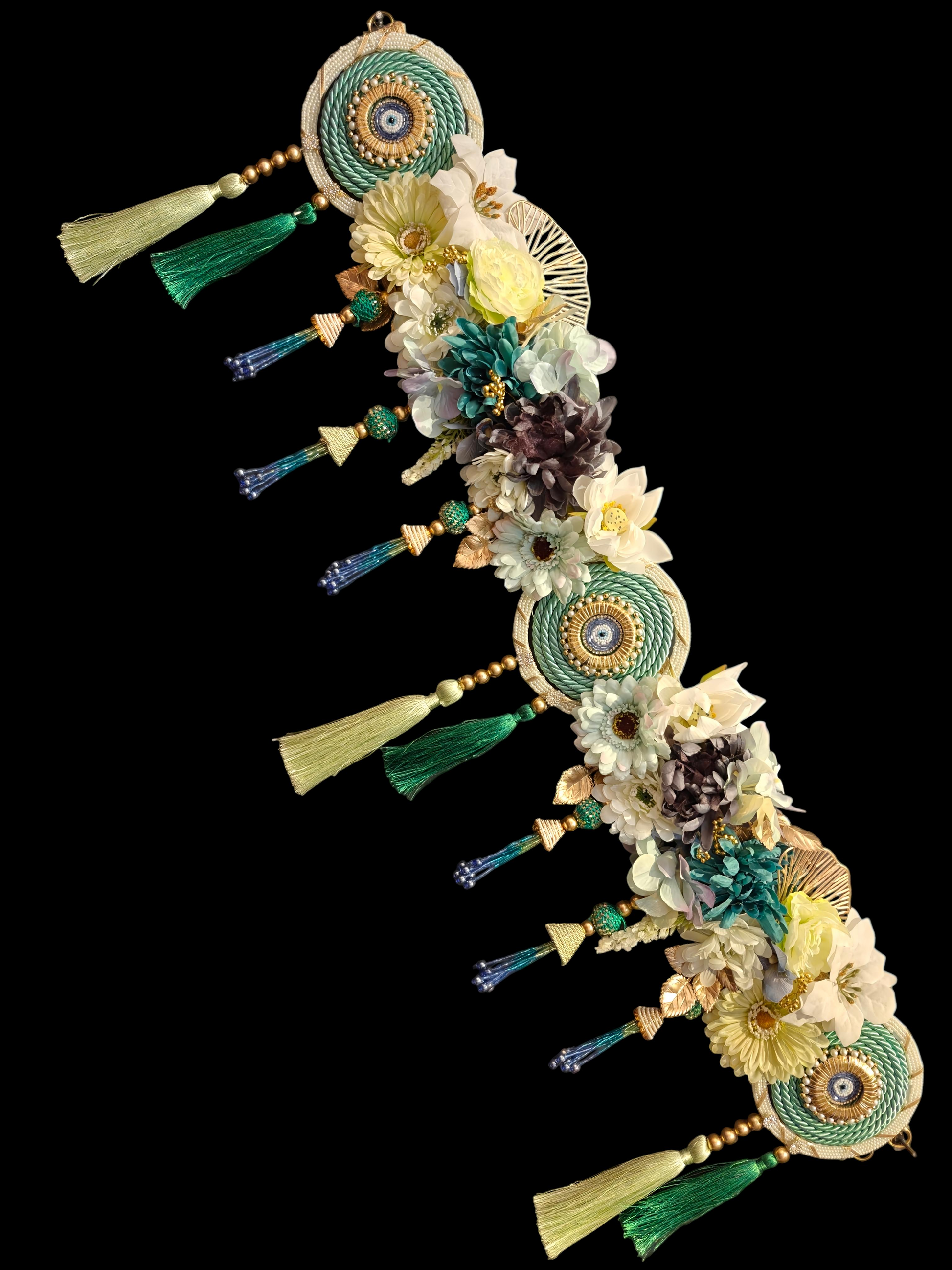 Introducing 40-inches handcrafted door hanging also known as Toran – a stunning addition to elevate your entryway or any living space. Its elegant design and ready-to-hang quality make it the perfect pick for doors, mandirs, or gifting on special occasions.