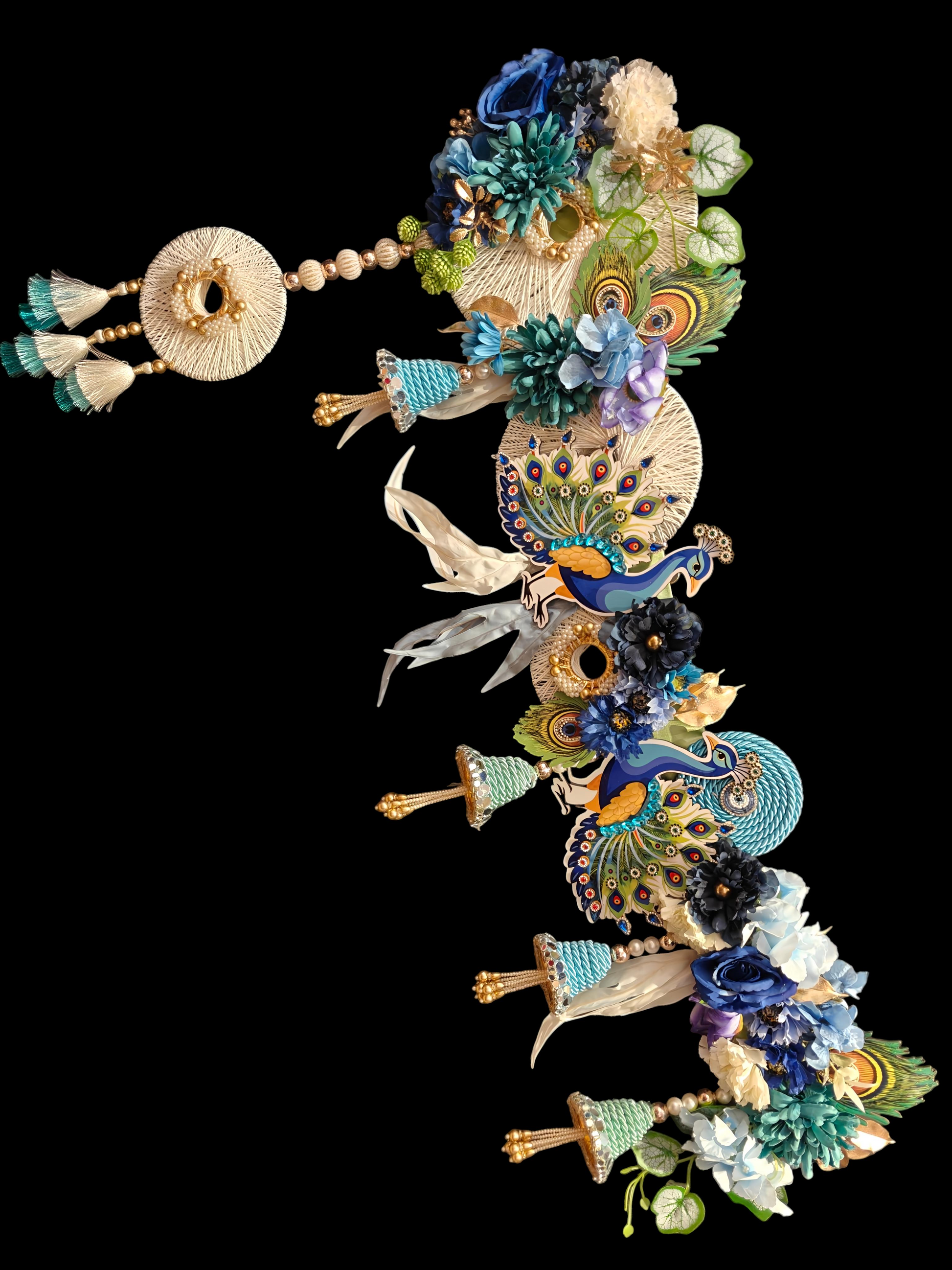 Introducing 40-inches handcrafted door hanging also known as Toran – a stunning addition to elevate your entryway or any living space. Its elegant design and ready-to-hang quality make it the perfect pick for doors, mandirs, or gifting on special occasions.