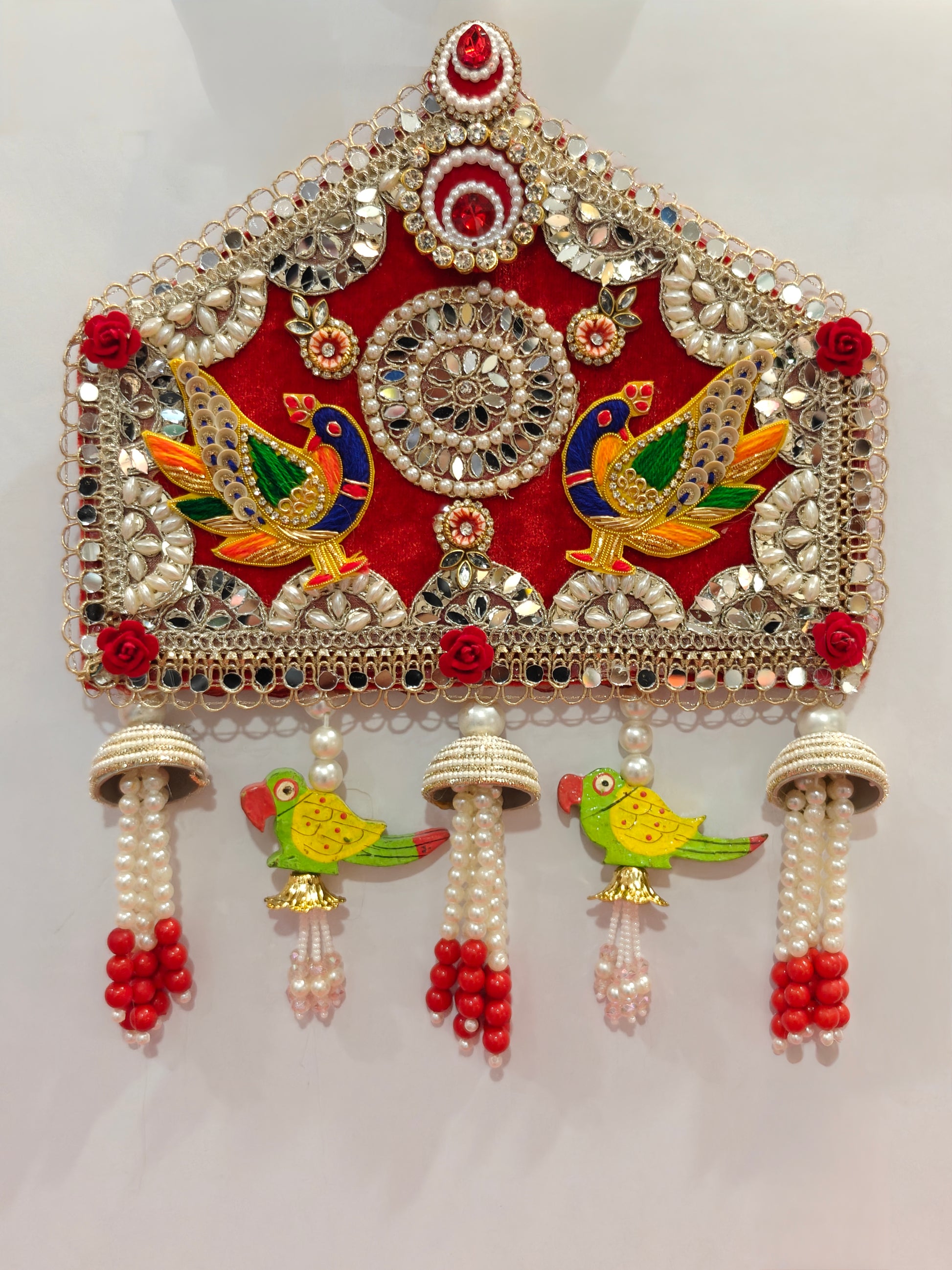 Crafted with Care: Each 9 x 13 inch Toran is handmade by experienced artisans, using premium materials like traditional beads, fabrics, mirrors, and sacred symbols.